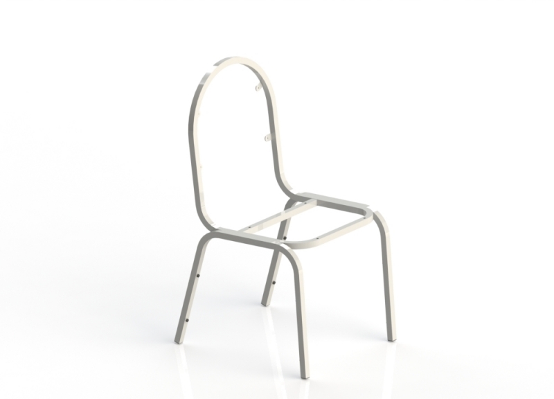Estrutura para cadeira de auditório com encosto redondo fabricada em tubo de aço 20 x 20, possui batoques de PVC nos pés para proteger a pintura no empilhamento.