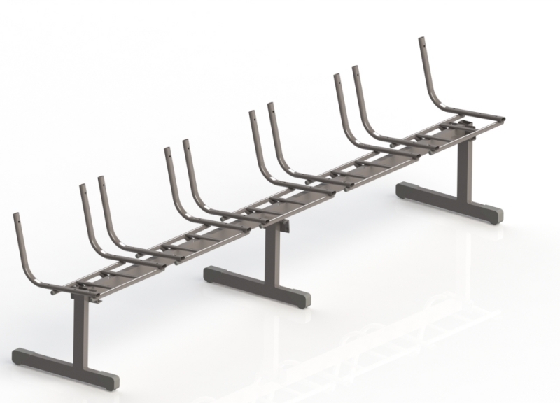 Estrutura longarina de 5 lugares para assento e encosto plástico desmontável, tubo 30 x 50 mm, acompanha porcas e parafusos de montagem dos pés.