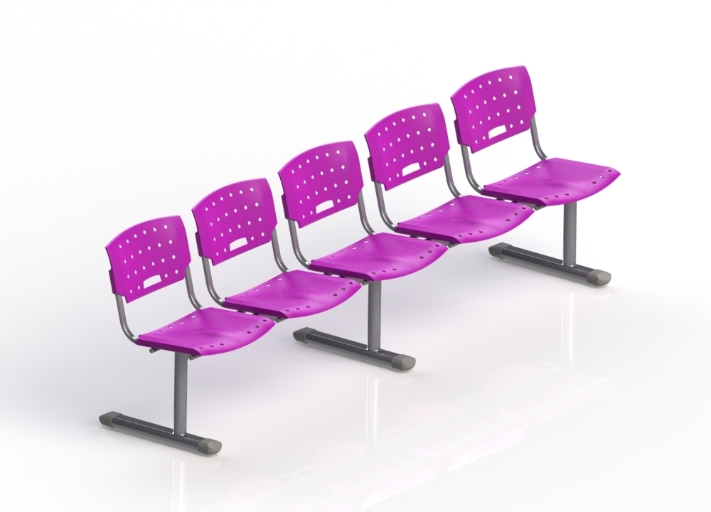 Estrutura longarina de 4 lugares para assento e encosto plástico, pés em tubo oblongo 40 x 77 mm.