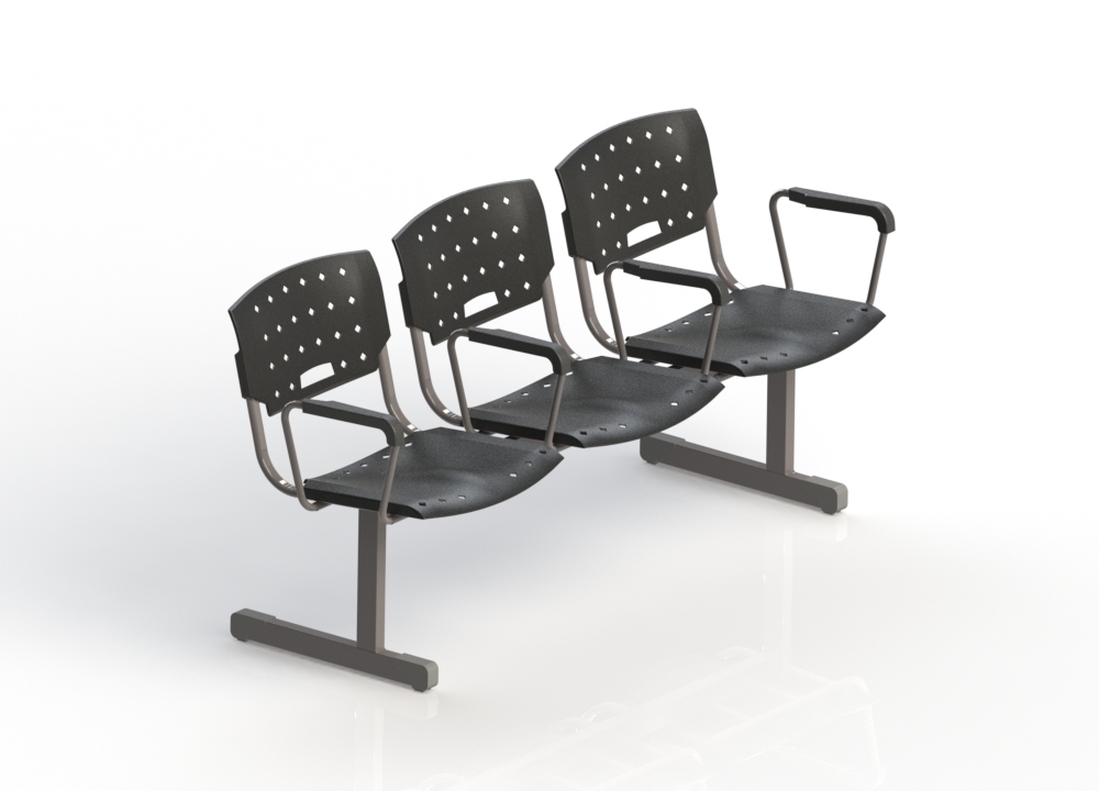 Estrutura longarina de 3 lugares para assento e encosto plástico, tubo 30 x 50 mm.